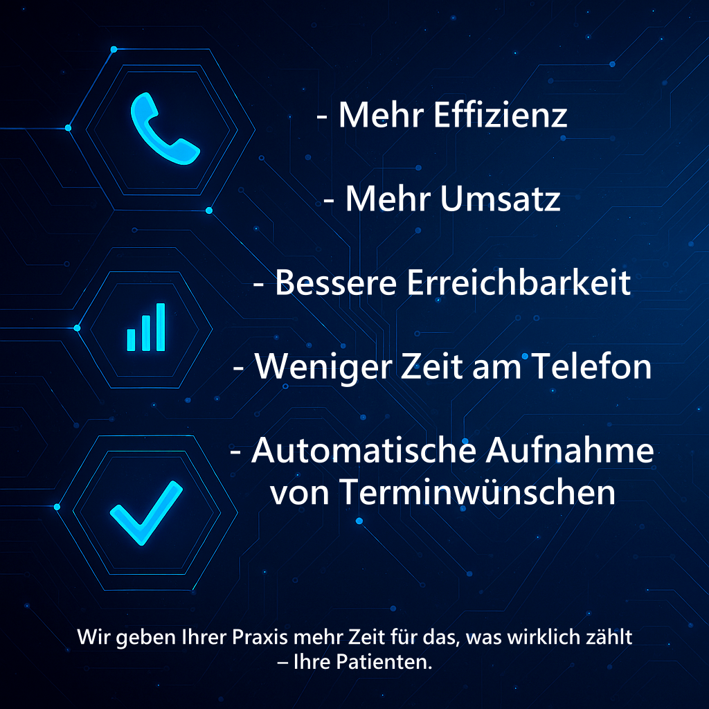 Jeder Anruf wird entgegengenommen, Anliegen werden priorisiert und Ihr Team bleibt entlastet, während Ihre Praxis wirtschaftlich wächst.
